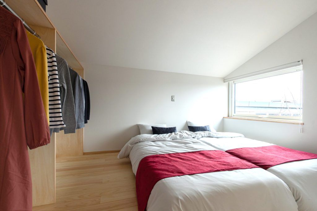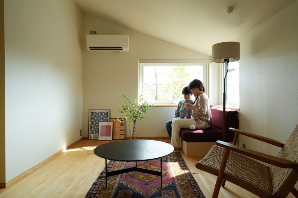 二階フリースペースはセカンドリビングや趣味のスペースに。窓からはお庭の植栽や遠くの山並みを眺められます。