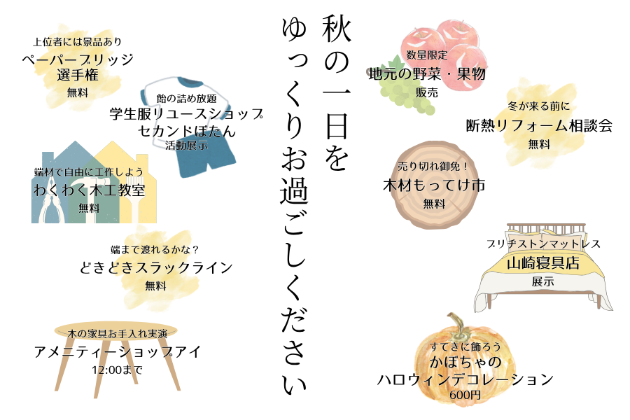 しなのいえ工房・しなのいえリノベーションから日頃の感謝を込めて、秋の一日をお楽しみいただけるイベントを開催します。