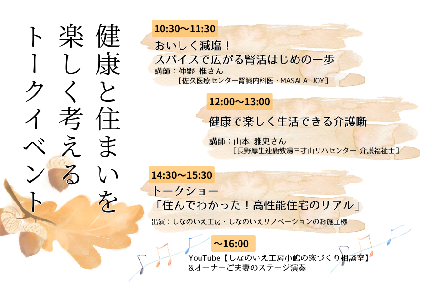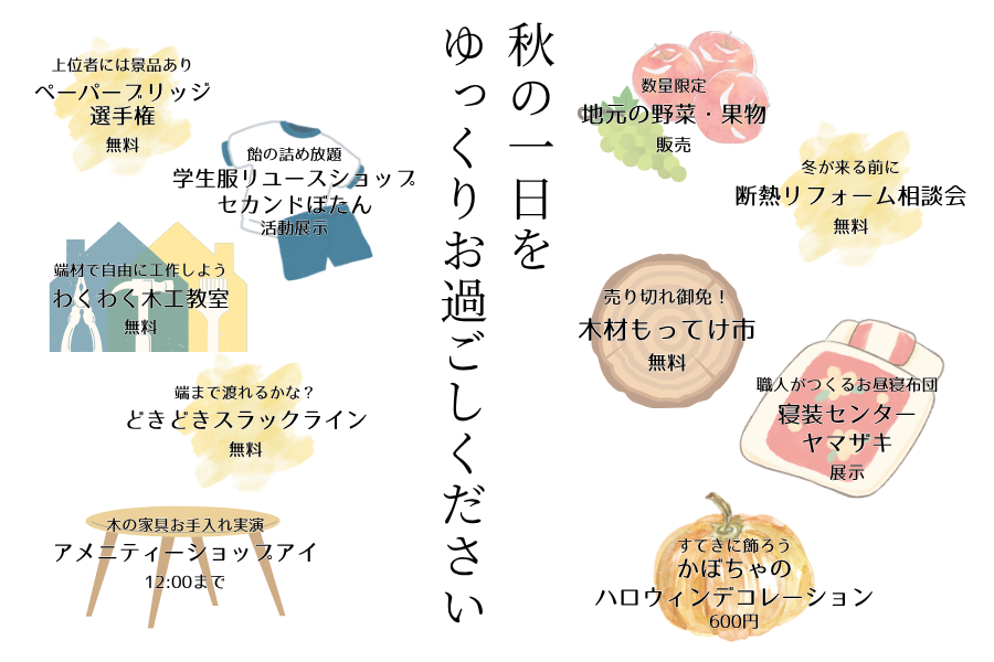 しなのいえ工房・しなのいえリノベーションから日頃の感謝を込めて、秋の一日をお楽しみいただけるイベントを開催します。