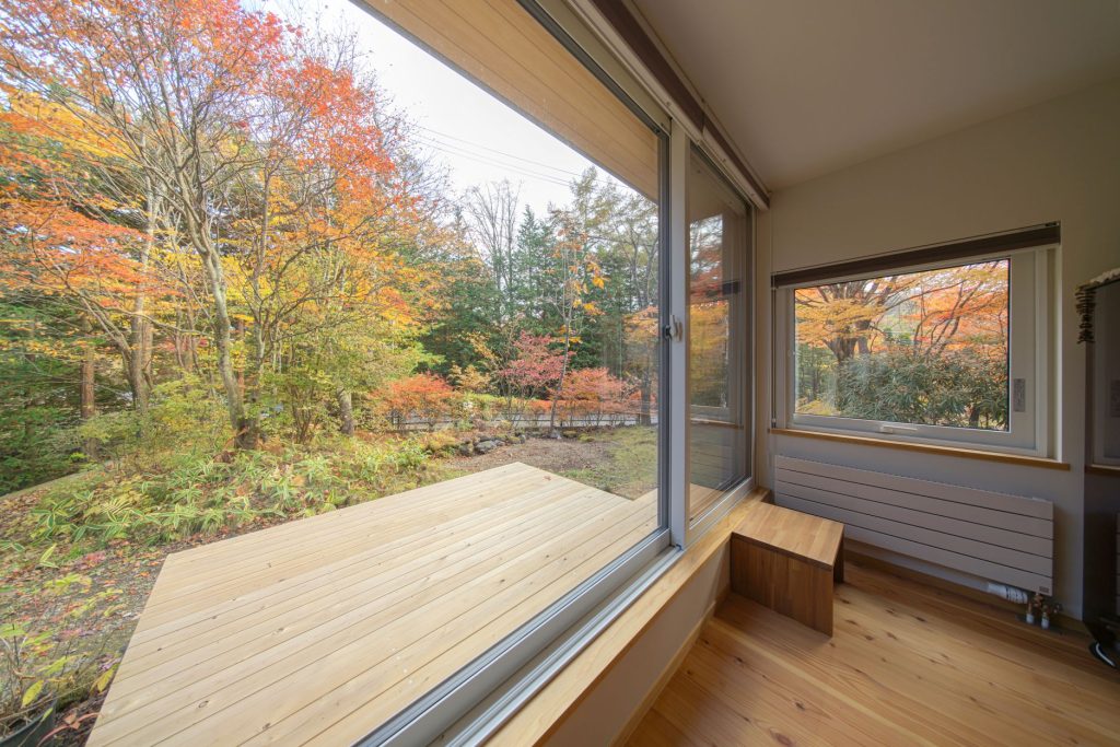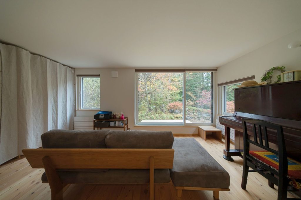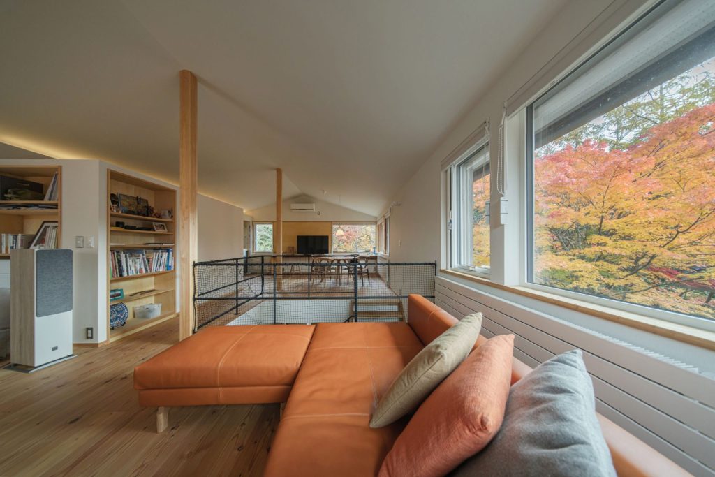 新居に暮らし始めてから、断熱性能の高さにも驚いているそう。『モミジの家』の空調は窓下のパネルラジエーターとエアコンのみですが、肌寒い晩秋の軽井沢でも、室内はエアコンなしで20℃~21℃をキープ。一階・二階ともほぼ温度差はなく、家にいる時間の大半を「はだしにTシャツで過ごしています」とO様。