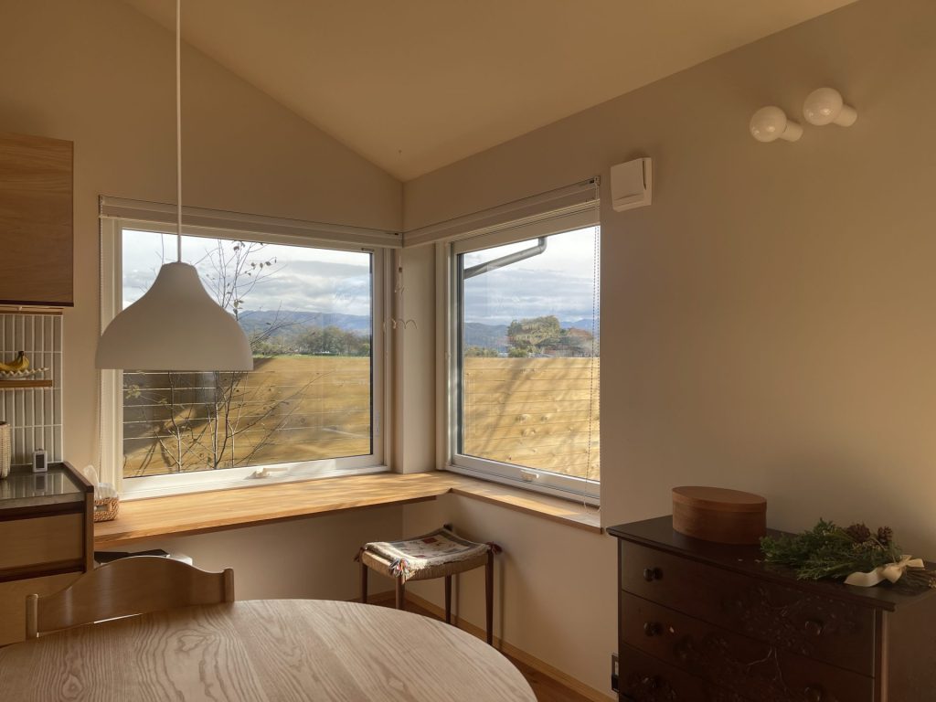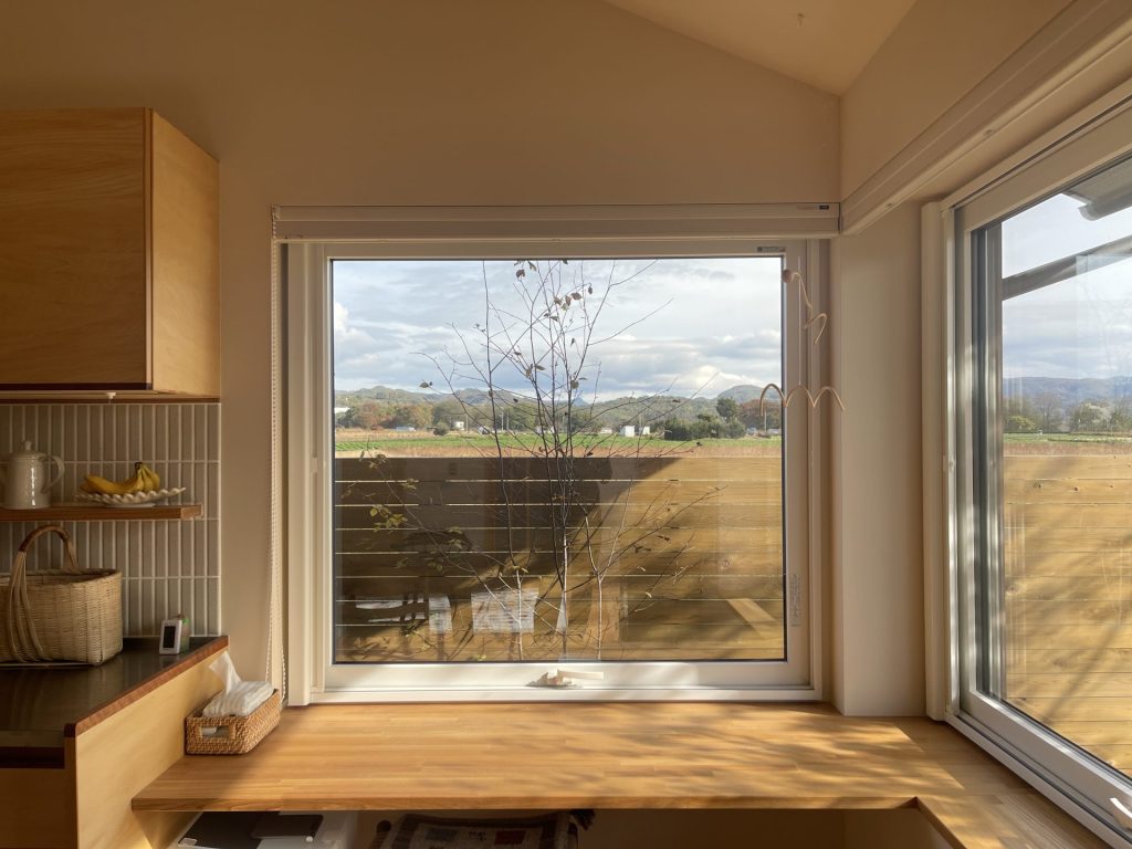 浅間山から八ヶ岳まで見渡せる、広々とした眺望が魅力の敷地に計画された平屋+ロフトの住まい。南面の窓からは芝の庭、周囲の畑、遠景の山々…と景色のレイヤーが楽しめる。